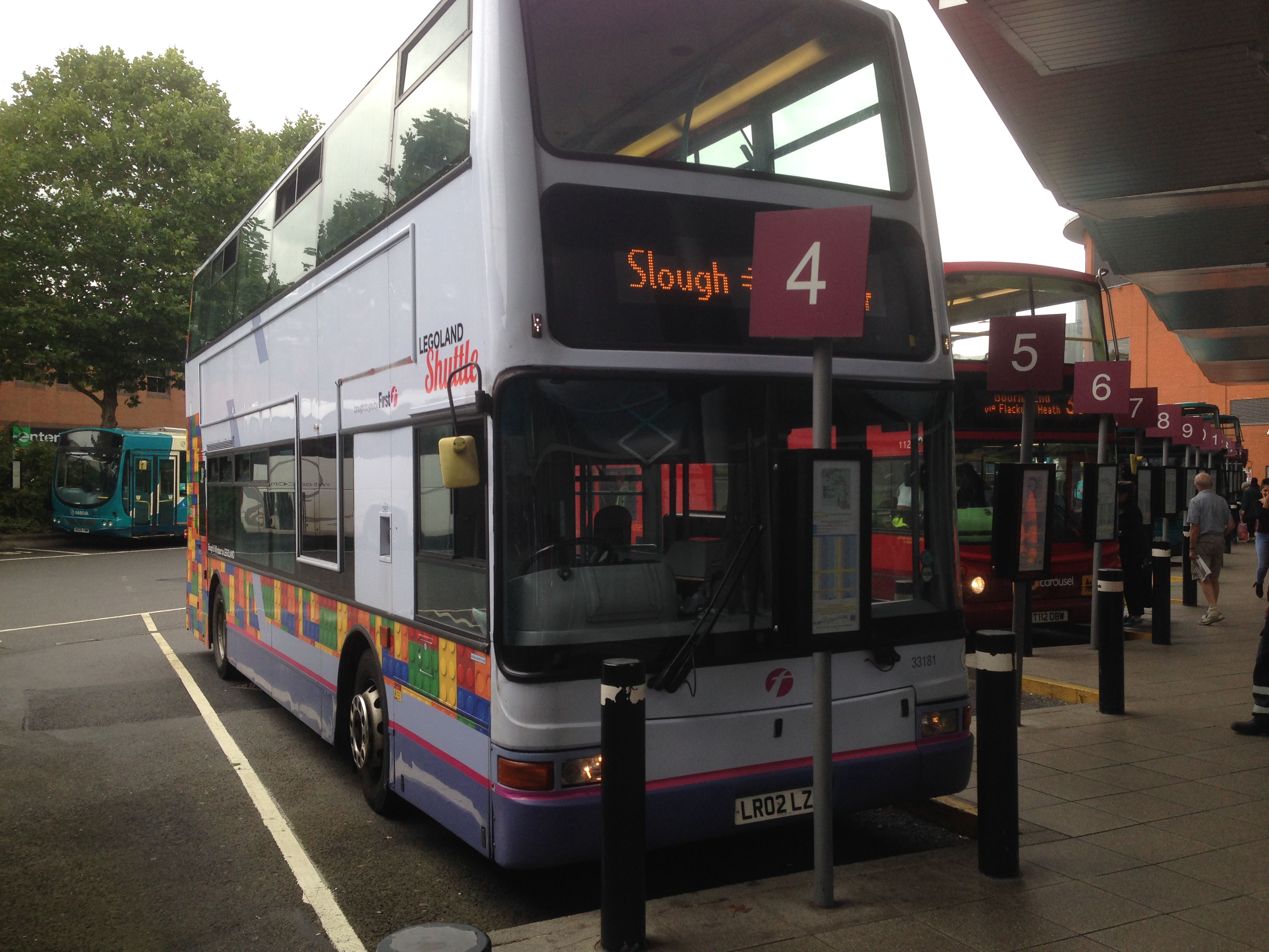 Two Tridents are seen together at St Mary's Butts in Reading having chased each other from Wokingham. Traffic conditions on the day in late May 2015 were causing bunching at various times that afternoon. Though 33142 (LR02LWX) arrived on stand first, the departing Trident behind, 33179 (LR02LYY), was scheduled to arrive before.