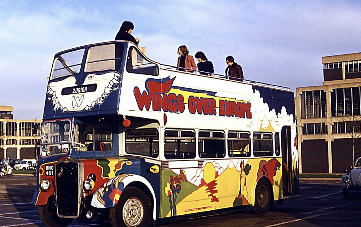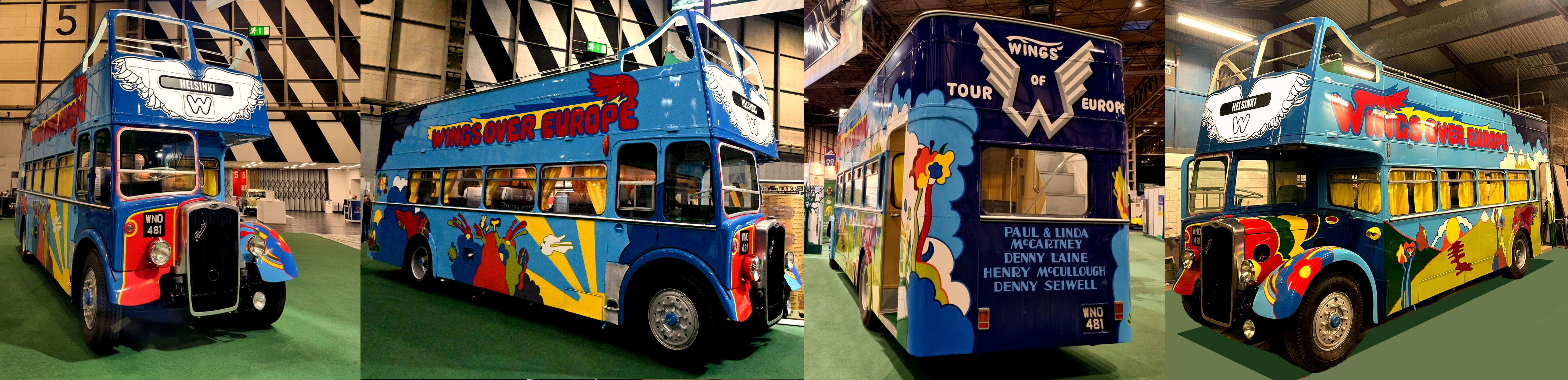The KSW had a fun career after its Euro tour. Later in 1973 Valliants became part Tricentrol and the KSW was transferred to their Dunstable depot and turned out in their mustard and white livery as such Tricentrol entered it in SHOWBUS 80 at Thorpe Park. The bus passed to White's of St Albans at some stage and adopted a London red livery with white lower deck window surrounds. It continued to lead a celebrity lifestyle appearing with Cilla Black on "Surprise Surprise" a couple of times and with West Ham start Trevor Brooking at the FA Cup. In May 1989 WNO481 appeared at BAFTA’s Cavalcade To Cannes The Great British Film Rally that went from London to Cannes in the South of France to fly the flag for the British Film Industry and again in 1990 for a BAFTA London to Cardiff Great British Film Rally. In between it was part of BAFTA's Julie Andrews tribute in October 1989. It eventually ended up outside a cafe in Tenerife before being moved to the cafe owner’s garden. Someone spotted it, realised its significance and it was then brought back to the UK and subsequently bought by Tom Creaven-Jennings, who wanted to restore it for the 50th anniversary of the the tour. These pictures are from its unveiling at The Classic Motor Show at The NEC in November 2022. With live bands performing each day on the newly imagined and engineered top deck performance space named in honour of its very own superstar: "The McCartney Stage". The bus was rocking to celebrate the 50th anniversary of the 7500 mile Wings Over Europe tour in 1972.